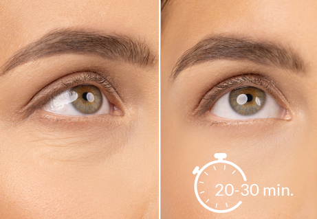Formuła płatków oparta na collageen, retinol, ceramiden en vitamine C biedt uitgebreide voordelen op het gebied van anti-aging en voeding. Na het eerste gebruik wordt de huid diep gehydrateerd, gladder en strakker. Regelmatig gebruik draagt bij aan het verminderen van donkere kringen en wallen, verbetert de stevigheid en verheldert de oogcontouren, waardoor je er zichtbaar jonger en uitgerust uitziet, vergelijkbaar met de resultaten van mesotherapie of carboxytherapie.